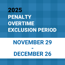 In accordance with Article 8, Sections 4 and 5 of the APWU Collective Bargaining Agreement, penalty overtime rules are not applicable for a consecutive four-week period each year during December. The “Penalty Overtime Exclusion” period for calendar year 2025 will begin Pay Period 26-2025, Week 1 (November 29, 2025), and end Pay Period 01-2026, Week 2 (December 26, 2025).