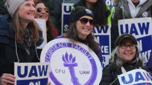 Contract Faculty United-UAW (CFU-UAW) members reached a tentative agreement with New York University (NYU) administrators on Wednesday after two days on strike.The union represents approximately 950 full-time, nontenure track faculty at the institution. While the agreement is still pending ratification, it includes wins like substantial salary increases, 3.5% annual raises starting next year, a new family care benefit fund, professional development resources, comprehensive health and welfare benefits, and more.“We fought, and won,” said Brendan Hogan, an NYU philosophy professor. “Everyone in our union will get a minimum raise of $14,000 by the start of the next academic year.”