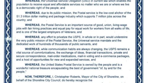 The post Mayor of Shoreline, WA, Signs Proclamation Celebrating 250 Years of Public Postal Service appeared first on American Postal Workers Union.
