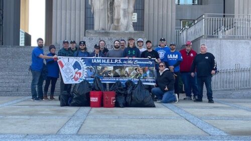 Members from IAM District 9 recently joined together to give back to their community and honor those who served. Volunteers gathered at Soldiers Memorial in downtown St. Louis to help prepare the grounds ahead of the city’s upcoming Veterans Day Parade. Nearly twenty IAM members participated in the clean-up effort, representing both the District 9