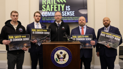 On the anniversary of the tragic and preventable East Palestine, Ohio train derailment, the IAM Union, Transportation Communications Union (TCU/IAM), Brotherhood of Railway Signalmen, International Association of Fire Fighters (IAFF), and rail union leaders with Transportation Trades Department, AFL-CIO (TTD) went to the Capitol to tell Congress that it’s time to pass the Railway Safety