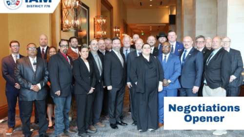 IAM District 776, representing approximately 5,000 members in Fort Worth, Texas, as well as members at NAS Pax River, MD and Edwards AFB, CA opened contract negotiations with Lockheed on Thursday, March 26. The bargaining committee, along with District leadership, International President Brian Bryant, and members of the IAM Executive Council, delivered a strong message