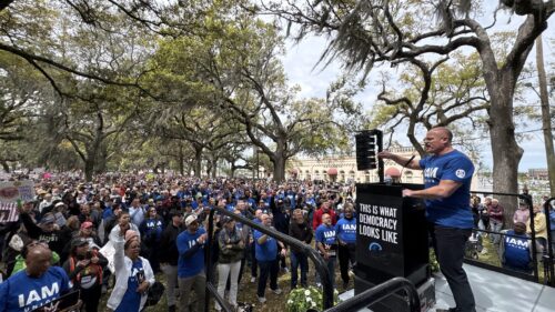 SAVANNAH, Ga., March 28, 2026 — Brian Bryant, International President of the 600,000-member IAM Union (International Association of Machinists and Aerospace Workers) joined thousands of labor, community, and pro-democracy activists Saturday at a “No Kings” rally in Savannah, Ga., delivering a forceful call for solidarity, economic justice, and political engagement from working people across the