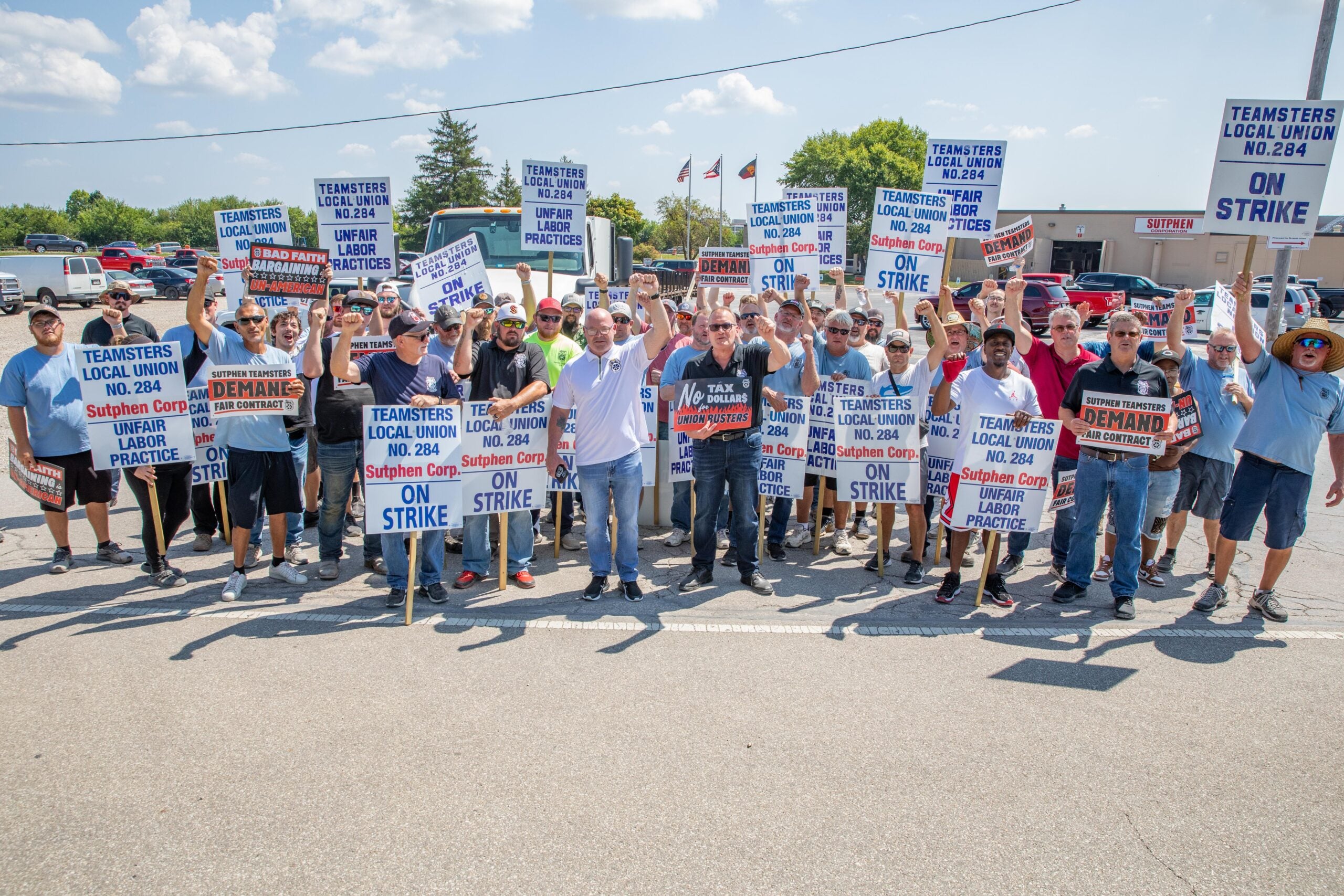 (DUBLIN, Ohio) – The International Brotherhood of Teamsters and the International Association of Firefighters (IAFF) are calling on local governments and fire divisions across the United States and Canada to boycott the Dublin, Ohio-based Sutphen Corporation for refusing to offer workers a fair contract. Production workers represented by Teamsters Local 284 have been on an unfair labor practice strike since May 28 due to the company’s refusal to bargain in good faith over a new contract for those who manufacture fire trucks and fire safety equipment.